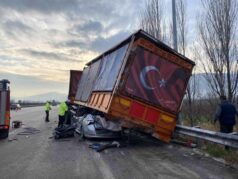 Bursa’da akılalmaz kaza : TIR’a çarpan otomobil, dorsenin altına girdi : 1 ölü